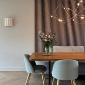 Voor deze gezinswoning in Vught stond het creëren van een warm en geborgen interieur centraal. Zachte, warme tinten en ronde vormen zorgen voor een vriendelijke en uitnodigende sfeer.